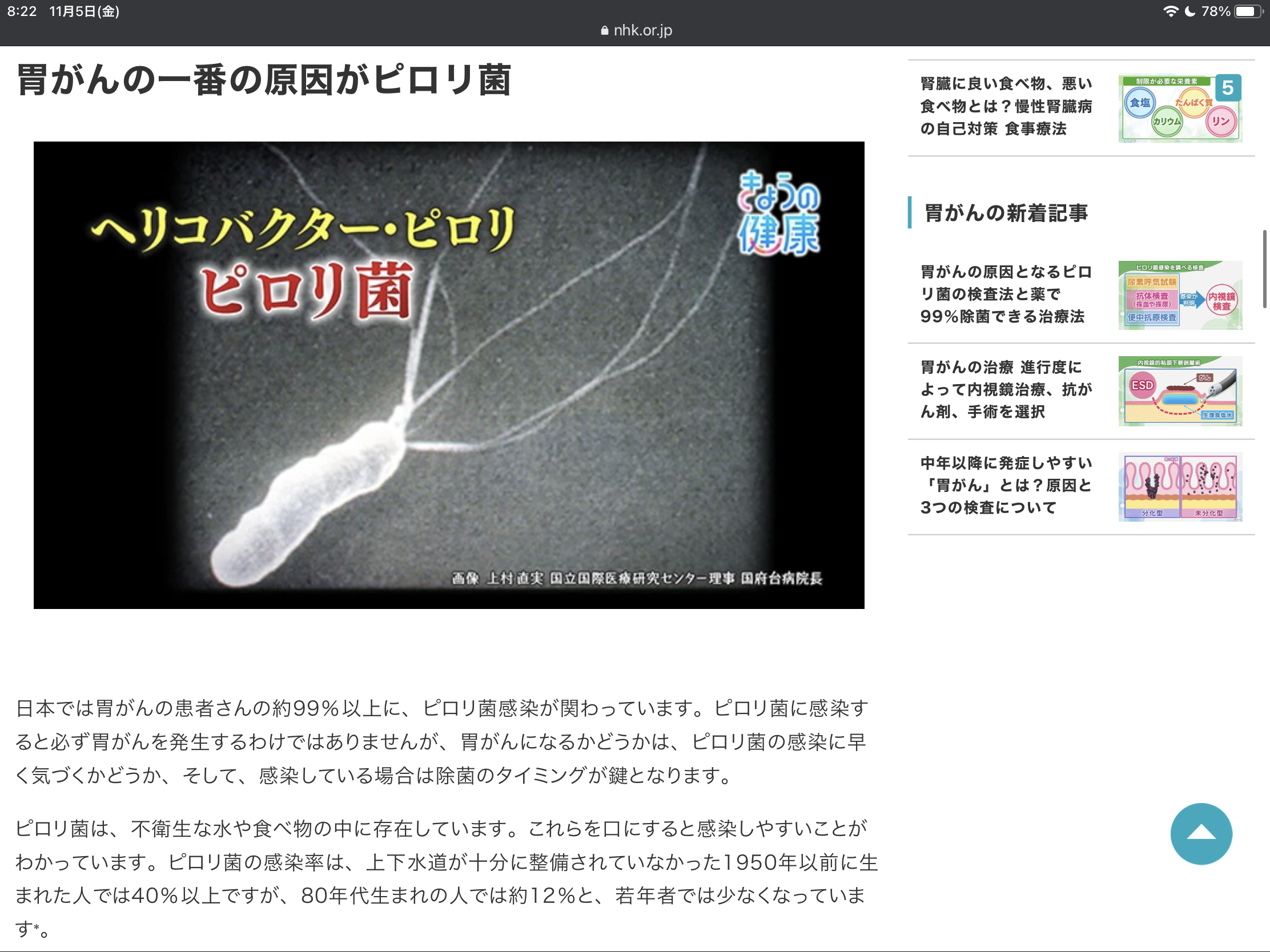 胃ガンの原因のほとんどは、ピロリ菌です。